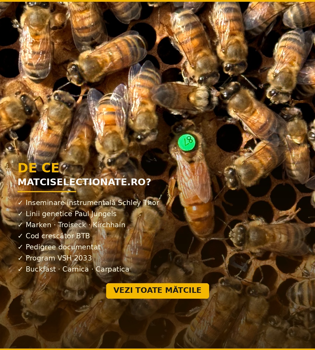 Multumesc dl. Neagu pt. reginele achizitionate de la dumneavoastra. Am fost si sunt foarte multumit de ele. Va multumesc si recomant oricui cu mare incredere. Cand am achizitionat matcile de la dv. acum 2-3 ani am avut doar 4 roi slabuti, iar acum din acele 15-16 matci am ajuns la peste 30 de fam. de albine. Va multumesc inca odata, aveti o selectie deosebita, nu mi-a venit sa cred cum arata o rama cu puiet in plin sezon...cum zicea cineva "e batuta".